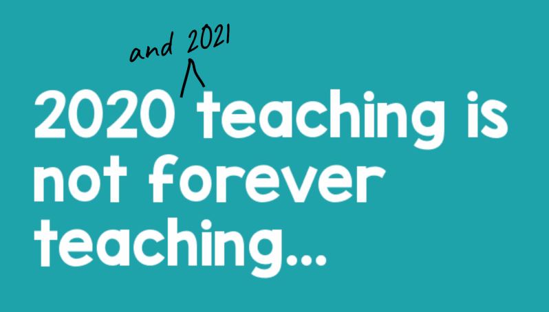 Trying to make it all happen didn’t work before COVID. In addition to our full-time gig (that whole teaching business), there’s the part-time job of preparing for tomorrow while leaving student feedback on today. (That literally is a part-time job in and of itself, but that’s a post for another time.) And then we’re raising babies or supporting our own kids’ remote learning (PSA: That’s not “homeschooling,” right?) or tolerating teenagers or caring for aging parents or working additional jobs to pay the bills…it’s a lot.