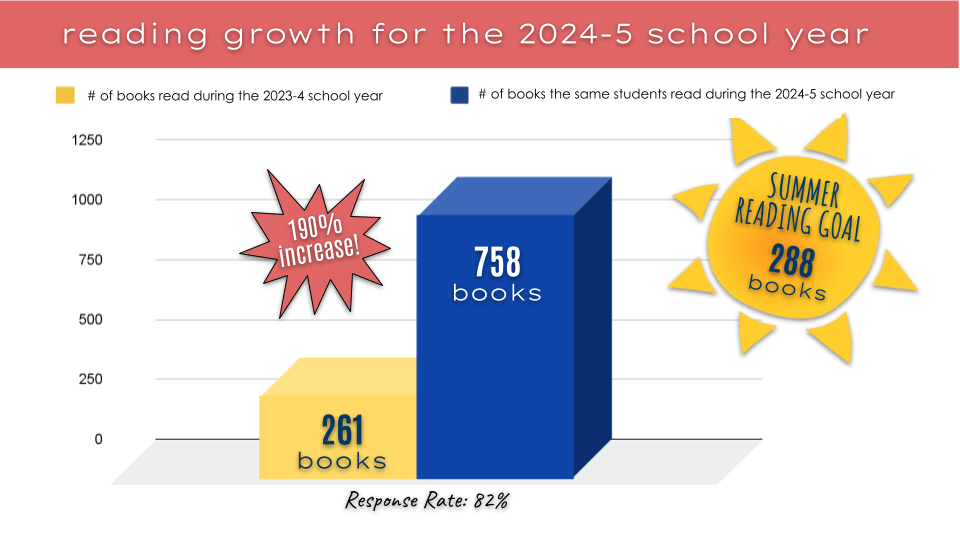So, at the end of every year, I ask students to tally how many books they read–cover-to-cover during our time together and compare it to what they read the year before.